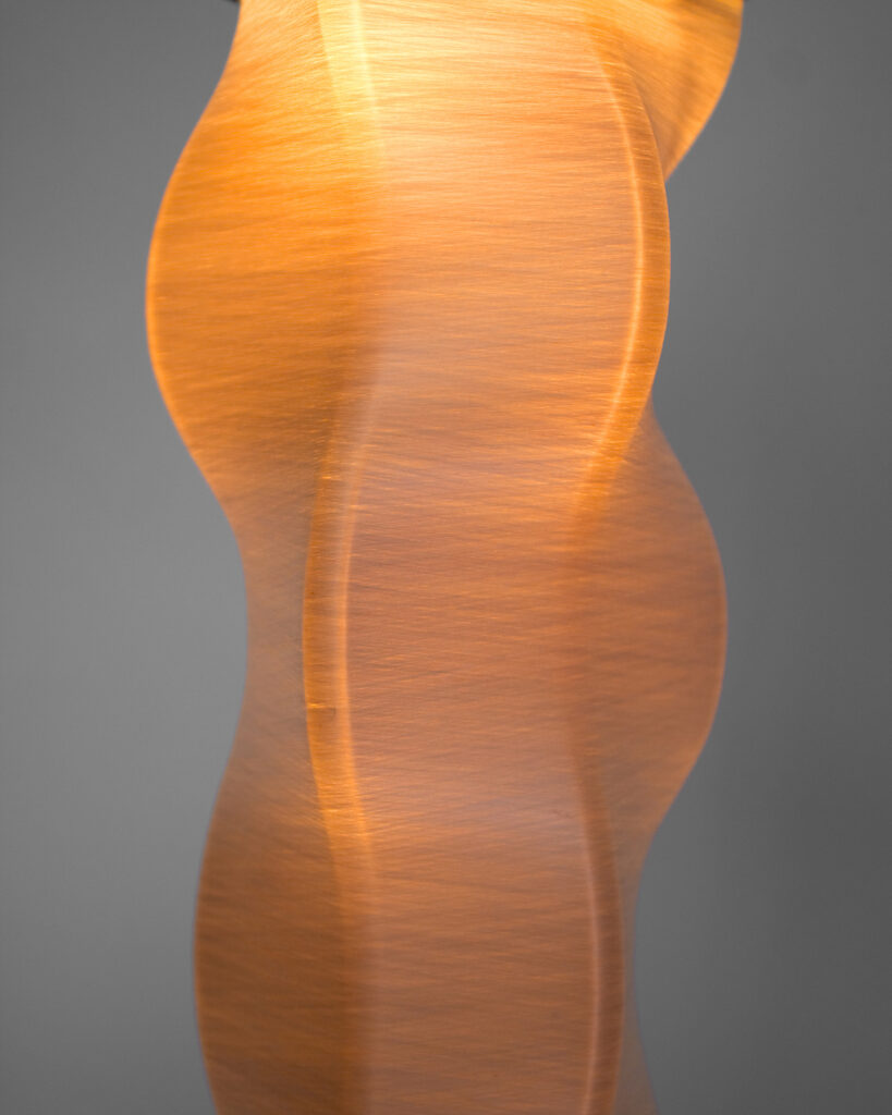 本プロジェクトは、こうした絹織物の製造工程や素材特性のリサーチから得られた知見をもとに、照明のシェードとして機能する新たなストラクチャを探求するものです。